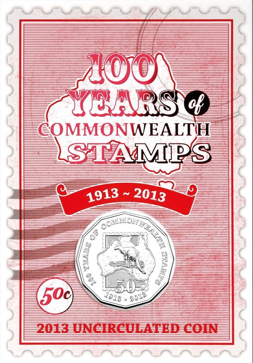 100 years of commonwealth stamps 1913-2013 50 cent uncirculated coin