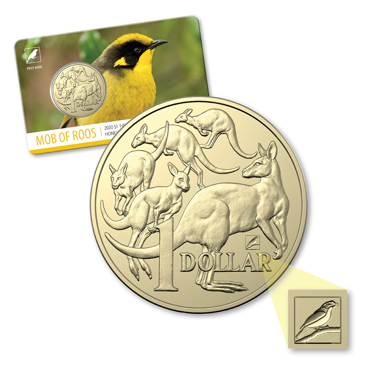 2020 $1 Mob of Roos 'Helmeted Honeyeater' Privymark Uncirculated $1 Coin Melbourne Money Expo