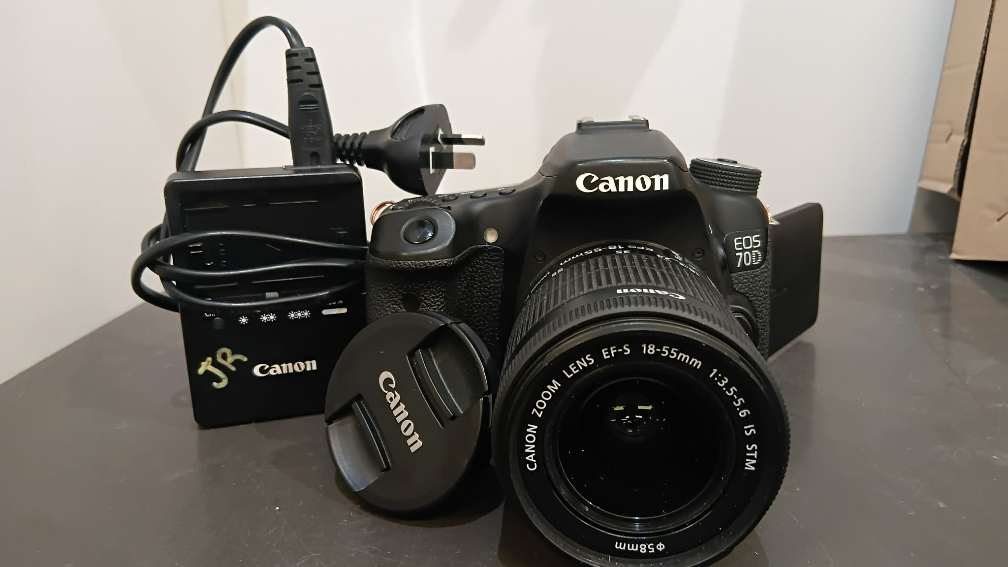 Capture life's remarkable moments with the Canon EOS 70D Digital SLR camera, boasting a 20.2 MP sensor for high-resolution photography. Equipped with a versatile EF-S IS STM 18-135mm lens, this camera offers a broad optical zoom range, perfect for both wide-angle shots and detailed close-ups. The 7.5x optical zoom, coupled with a 1.6X digital zoom, provides extensive zooming capabilities for your creative expression. The EOS 70D shines in both photo and video, featuring advanced image stabilisation to ensure crisp, clear footage. With a 3.0in screen for easy viewing and live view, HDMI and USB-C connectivity for versatile sharing options, and a lightweight design at just 0.67kg, this camera is both powerful and portable. The black finish gives it a sleek, professional look, making it a great choice for photographers who value quality and style.