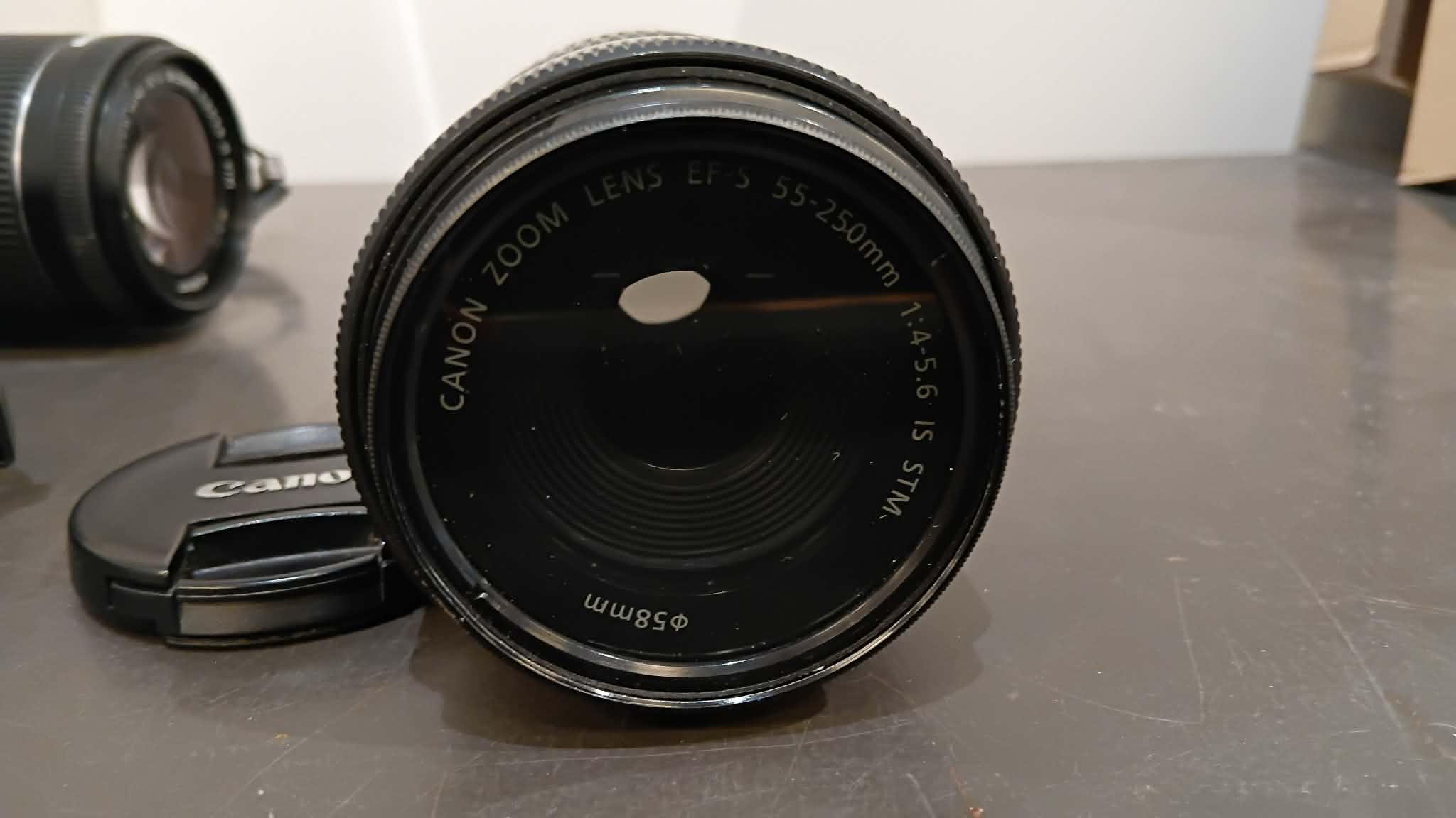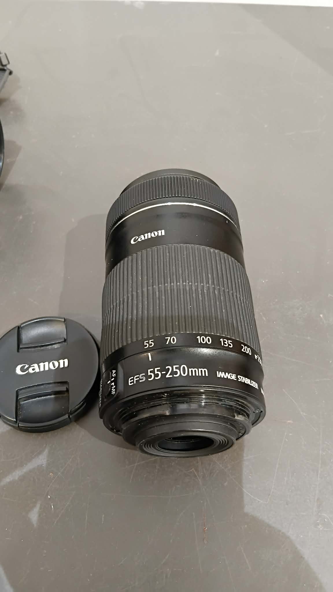 Also includes an additional EFS 55-250mm Lens and battery charger.